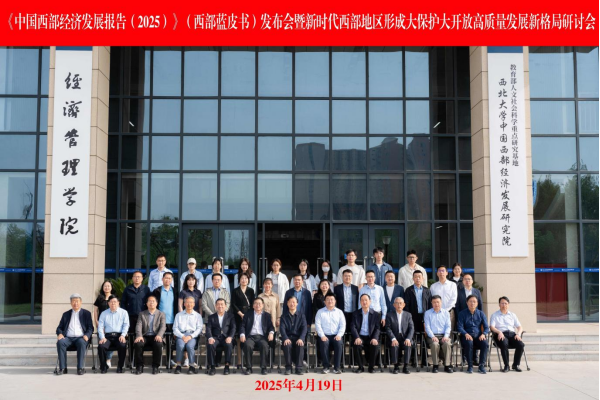4月19日,《中国西部经济发展报告(2025)》(西部蓝皮书)发布会暨新时代西部地区形成大保护大开放高质量发展新格局研讨会在西北大学长安校区举行。本次活动由教育部人文社会科学重点研究基地——西北大学中国西部经济发展研究院与社会科学文献出版社联合主办,776net必赢官网协办。