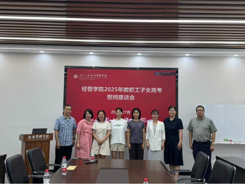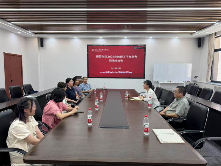 7月26日下午,学院在宏观经济大楼623会议室召开2025年教职工高考子女座谈会。党委书记史波、院长马莉莉,我院教师陈关聚、付媛、郭宏及其子女参加了座谈会。座谈会由院长马莉莉主持。