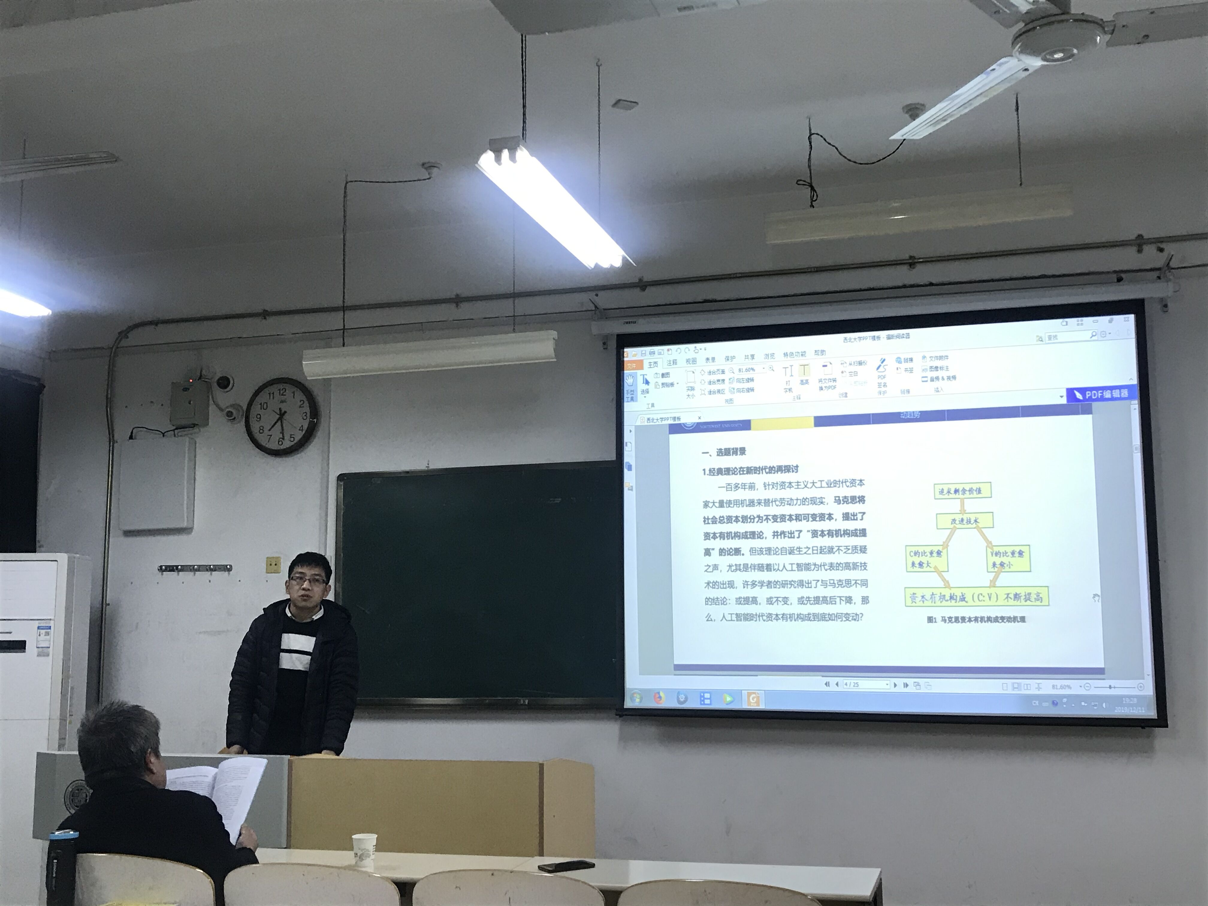 基地学术课堂的第一单元为现代经济学理论与方法创新论坛第十六卷第十期,由776net必赢官网2017级经济学基地班本科生于家伟对题为《人工智能时代资本有机构成的变动趋势及其启示——基于三次冲击分析框架的考察的论文进行了报告。马克思的资本有机构成理论正确解释了资本主义下相对人口过剩的现象,随着新一轮技术革命浪潮到来,人类将进入人工智能时代,在新的背景下对资本有机构成的变动趋势进行考察具有重要的理论和现实意义。本文根据人工智能发展的阶段性特征,构建了发达国家和发展中国家资本有机构成变动的三次冲击分析框架,并将之与康德拉季耶夫周期结合进行考察。本文得出了发展中国家资本有机构成变动滞后于发达国家一个阶段的规律,揭示了发达国家和发展中国家在技术革命浪潮中的不等地位,并得出了包括我国在内的广大发展中国家应对人工智能革命冲击的一些启示。杨建飞教授对该论文研究主题的新颖性与独特性予以肯定,并就论文的选题及写作方法给予同学们指导。