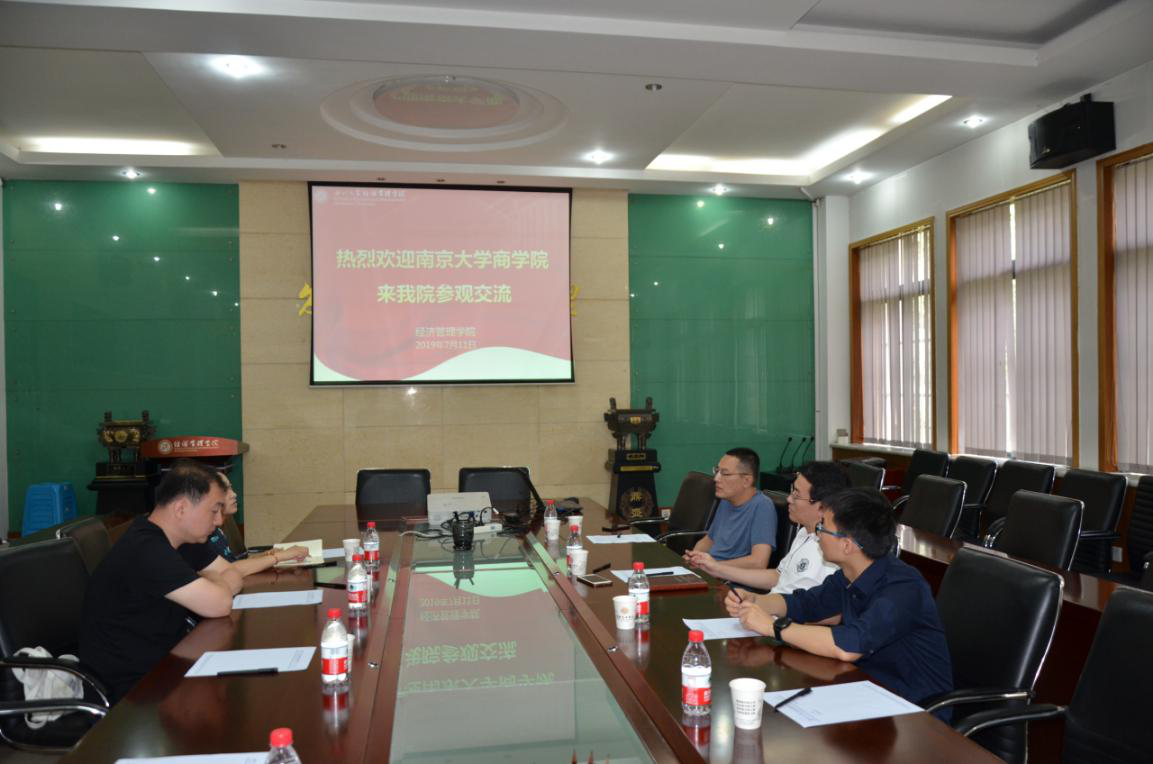 2019年7月11日,南京大学商学院实验中心姜老师一行来我院参观交流,我院李辉副院长、实验教学中心宫胜副主任及中心工作人员进行座谈会。首先,姜老师一行参观我院应用经济学与管理学国家级实验教学示范中心,在参观过程中就实验室建设、软硬件平台建设等进行了交流和学习。在会谈中,双方分别介绍了各自学院实验中心的基本情况,之后就本科人才培养、本科实验教学设置与安排、实验室建设及虚拟仿真实验教学项目等内容做了进一步沟通和交流。