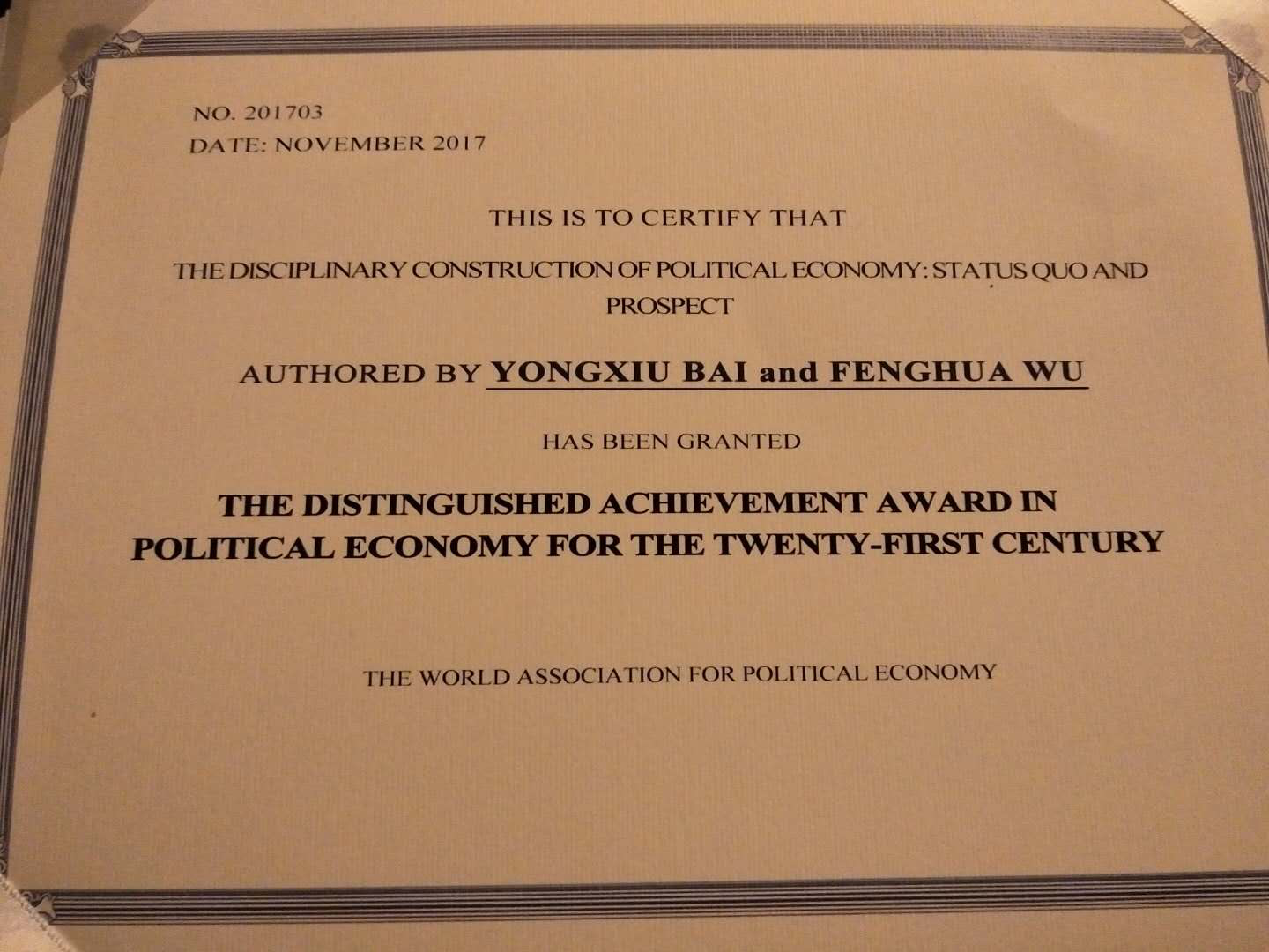 我院白永秀教授应邀参加世界政治经济学会第12届论坛并获“21世纪世界政治经济学杰出成果奖”