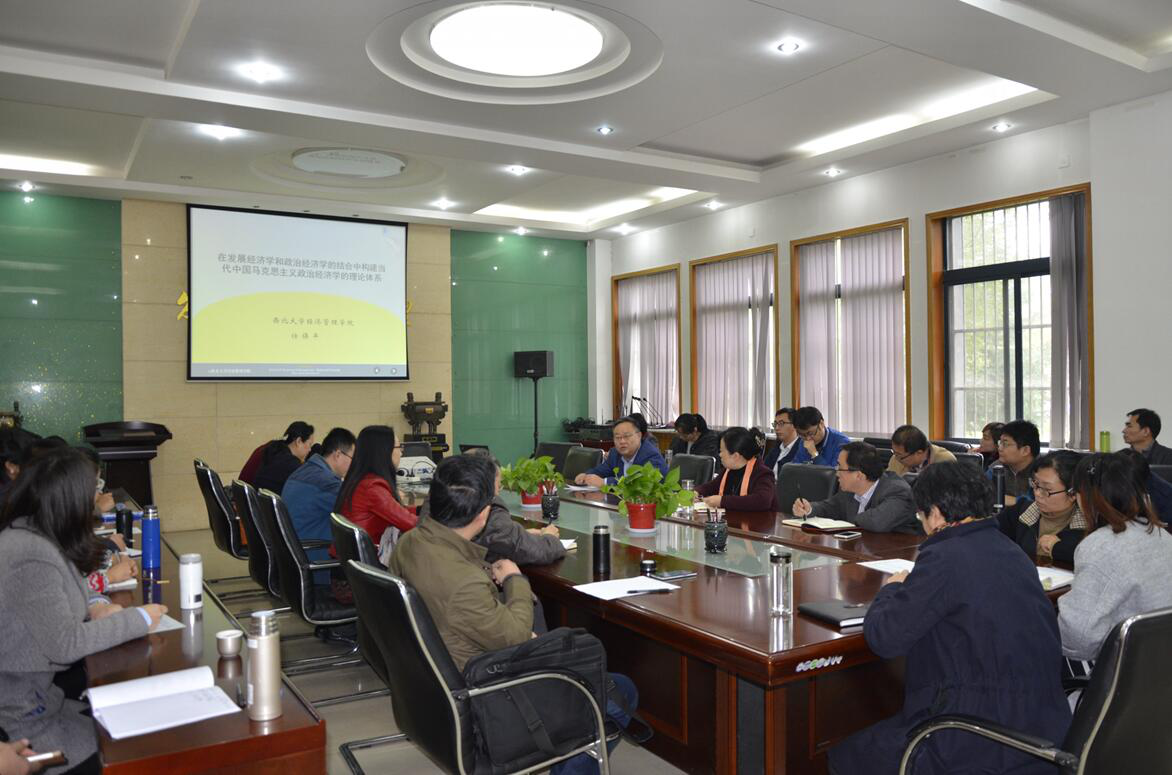 2016年11月2日下午,776net必赢官网经济类教师学术沙龙2016年第3期(总第78期)在长安校区8号楼一层会议室成功举行。沙龙邀请院长任保平教授以“在发展经济学和政治经济学的结合当中构建当代中国马克思主义政治经济学的理论体系”为题,做了一场观点新颖、思想深刻的学术报告。沙龙由副院长何爱平教授主持,40余名青年教师参加了此次活动。