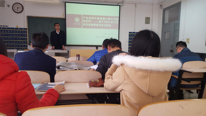 2016年11月23日下午,由经济学系和数理经济与统计系主办的现代经济学理论与方法创新论坛第十二卷第七期在2310教室顺利举行。此次论坛主题为“产业结构升级能缩小城乡消费差距吗?——基于2000-2013年省际面板数据的实证研究”,776net必赢官网经济学系副教授吴丰华老师担任主讲人,论坛由王颂吉老师担任主持与评论人,博硕士研究生20余人参加了此次论坛。