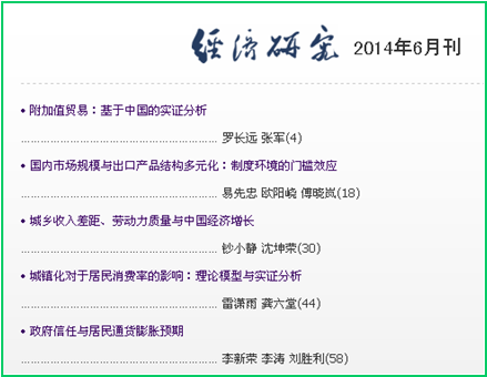 我院钞小静副教授的文章在权威期刊《经济研究》发表