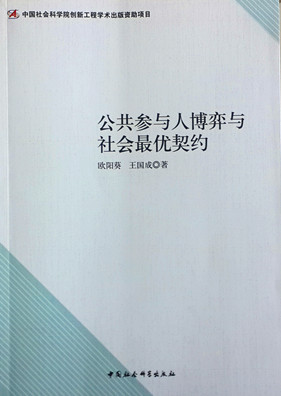 近日,我院数理经济与统计学系青年教师欧阳葵博士的学术专著(第一作者)《公共参与人博弈与社会最优契约》由中国社会科学出版社正式出版。本书是在欧阳葵的博士论文基础上修改而成,获得了中国社会科学院哲学社会科学创新工程项目资助。