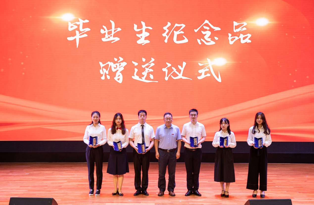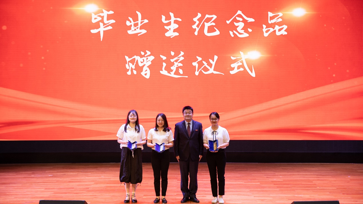 副院长、会计学系李辉副教授为本科毕业生代表赠送毕业礼物