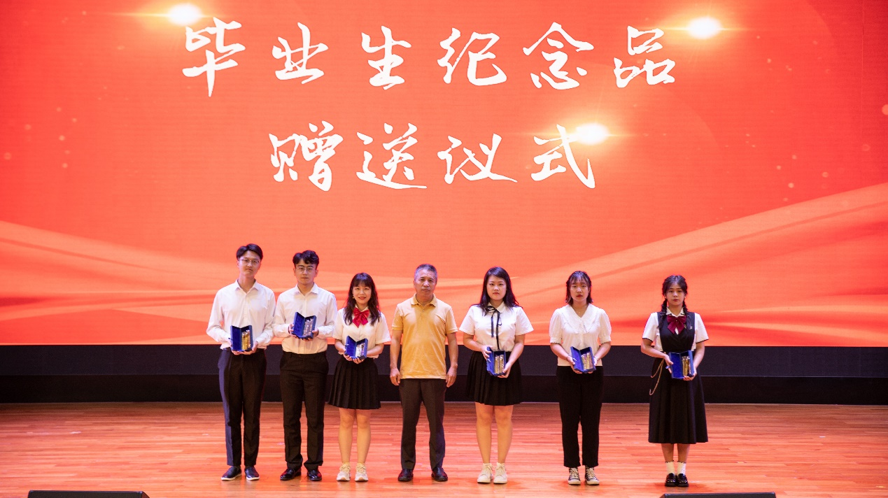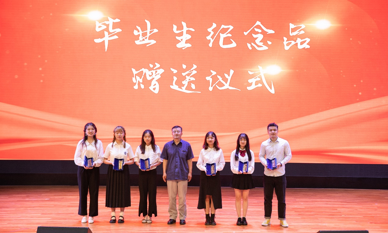 旅游管理学系主任梁学成教授为本科毕业生代表赠送毕业礼物