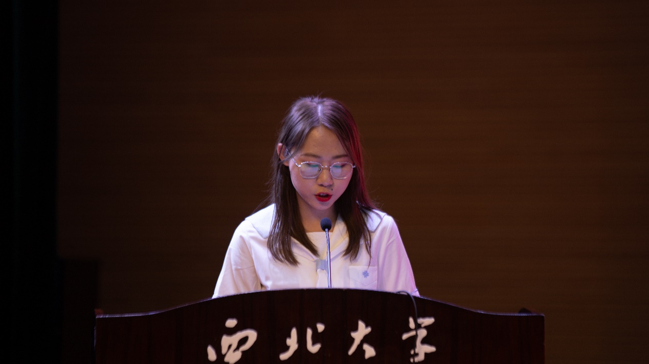 2021届本科毕业生代表任欣怡、于家伟,研究生代表张倩分别发言,他们和所有毕业生一起回顾了在校学习和生活的美好青春时光,表达了对学院师长们的真挚感谢。她们表示将在毕业后的征程中,搭乘时代变革之长风,把握青春活力之年华,锐意进取,激情奋斗,做有理想、有本领、有担当的新时代青年,用青春之美丽,铸就青春之未来。