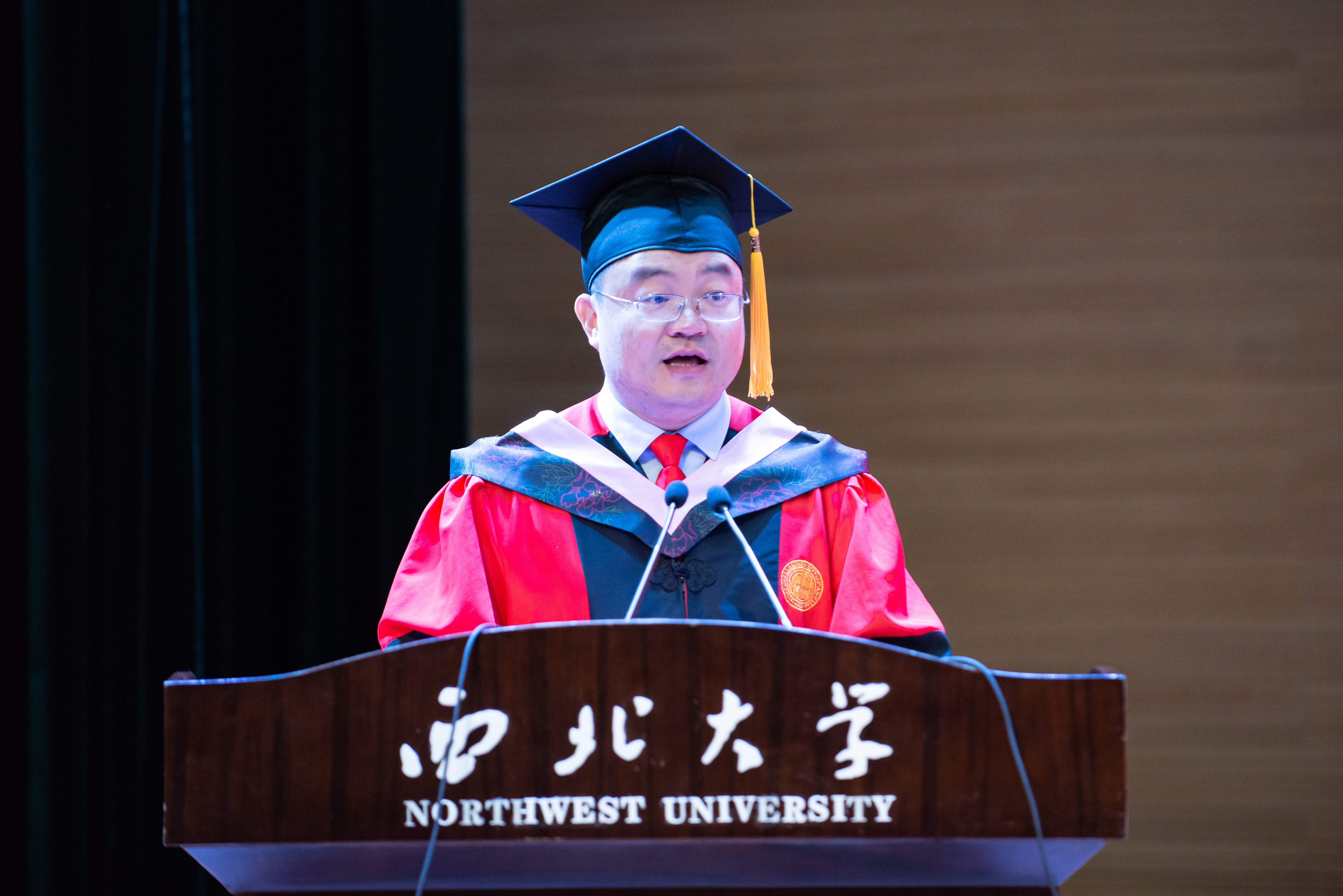 毕业生代表向教师代表献上鲜花,感谢老师的谆谆教诲和辛勤付出。典礼在“汉唐盛地,西北上庠,风雨设帐历沧桑……”嘹亮的校歌声中圆满闭幕。