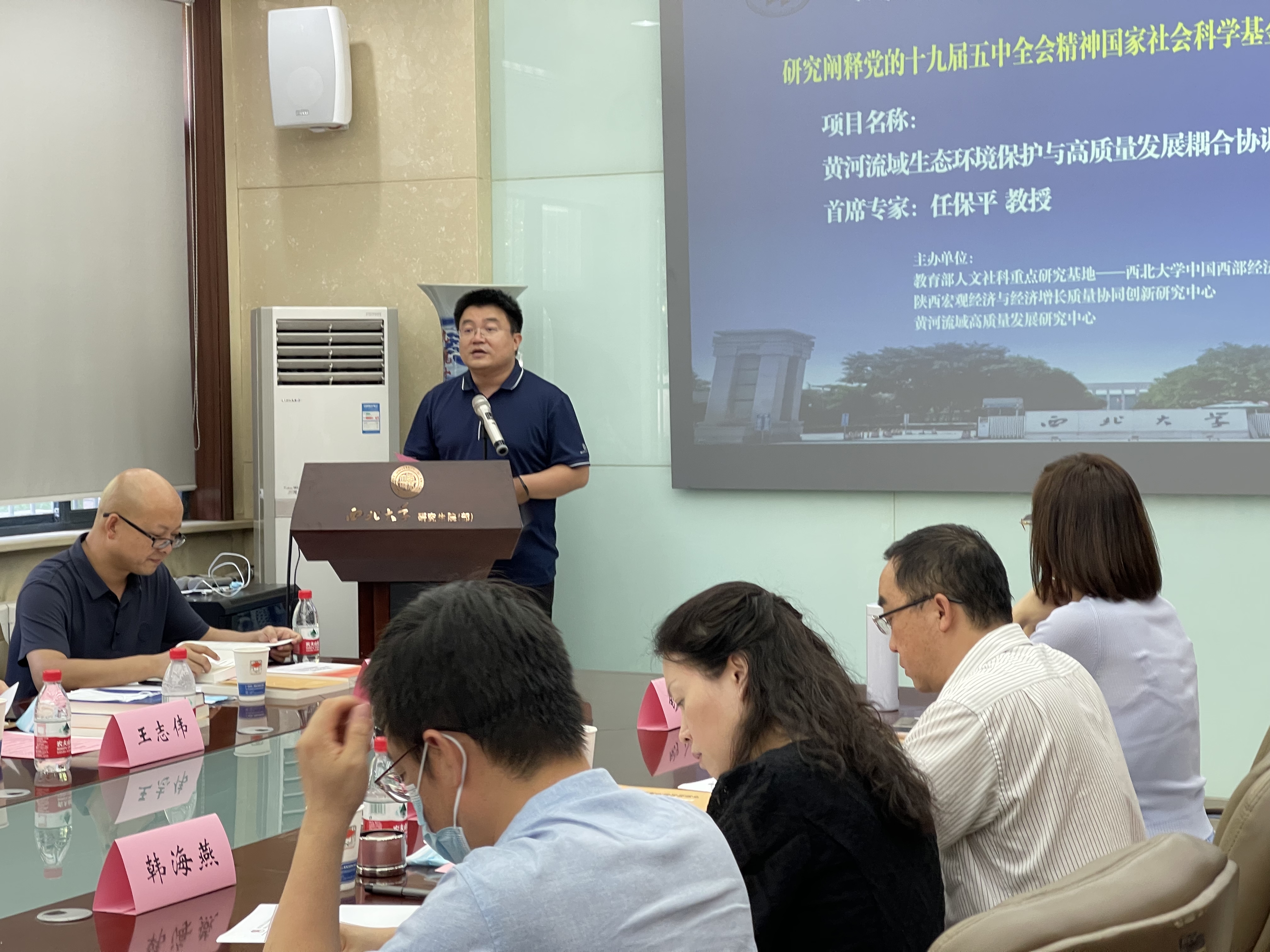 7月31日下午,由教育部人文社会科学重点研究基地——西北大学中国西部经济发展研究院承担的国家社科基金重大项目《黄河流域生态环境保护与高质量发展耦合协调与协同推进研究》开题论证会在西安召开。陕西省社科联党组书记、常务副主席郭建树,陕西省委宣传部理论处处长、社科工作办主任高宝荣,陕西省委宣传部理论处国家社科基金重大项目主管王志伟、西北大学副校长吴振磊和西北大学社科处处长马朝琦、副处长李丰庆出席会议。西安财经大学原校长胡健教授担任开题论证会专家组组长主持论证环节,陕西省委副秘书长、省委党史研究室主任任宗哲教授,陕西省人民代表大会常务委员会财政经济工作委员会副主任杨三省教授,陕西省社科院副院长王建康研究员,陕西省发改委黄河办主任荣朝柱、776net必赢官网数理经济与统计学系主任茹少峰教授等担任专家组成员参加论证会。