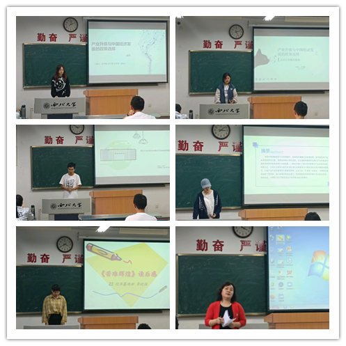 本次“基地学术课堂”活动由赵麦茹副教授担任指导教师。赵麦茹教授主持并点评了本次活动。赵老师与同学们讨论了《产业升级与中国经济发展的政策选择》一文的逻辑结构,行文思路以及关于产业升级的发展问题与建议。同时教导学生在论文写作与研习时要进行批判性阅读。赵麦茹教授为学生们解读了作者在文中对产业升级新范式的见解,并对评论内容进行了讨论讲解。