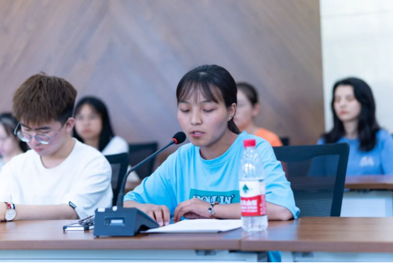 三位少数民族学生代表做了交流发言。2020级财政学专业藏族学生卓玛曲措回忆了她过去上学时期经历的困难,感慨西藏发生了翻天覆地的变化。她感激地说:“这些都离不开我们党的好政策,离不开党中央对各族群众的深切关怀和对民族工作的高度重视,非常感谢党和国家让我的家乡变得越来越好。”2020级信管专业维吾尔族同学买合甫来提讲到:“经过各方面艰辛努力,新疆经济社会发展和民生改善取得了前所未有的成就,各族群众的获得感、幸福感、安全感不断增强。这些都得益于党的领导,得益于党的民族好政策。”2020级金融学满族学生赵禹涵热情地诉说了近年来他家乡发生的巨大变化,以及他对铸牢中华民族共同体意识的理解,决心做民族团结的模范代表。