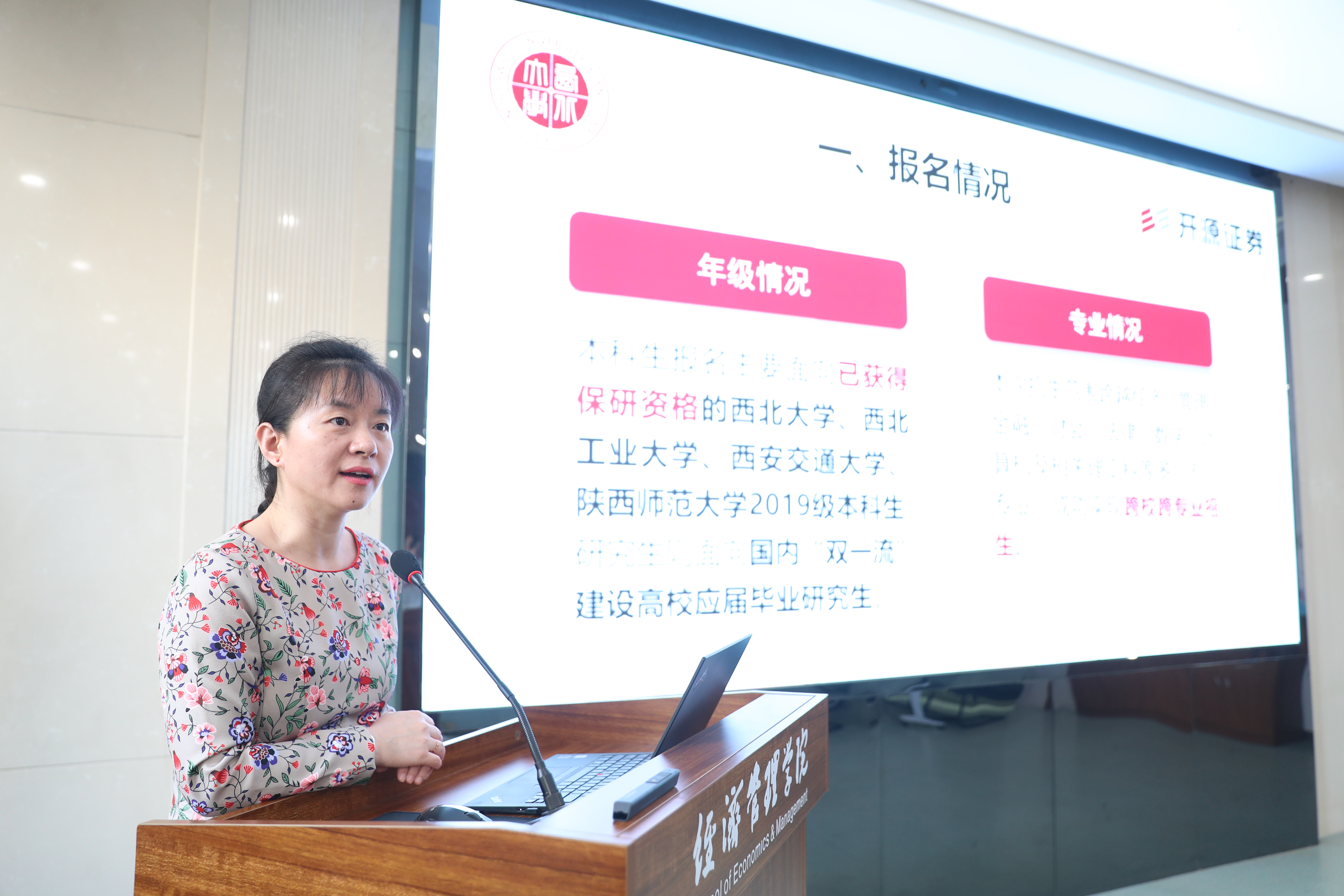 会上,马莉莉对第三届“开源证券-西北大学”创新人才实验班具体情况进行了介绍。“开源证券-西北大学”创新人才实验班是开源证券与西北大学战略合作的重要项目之一,两届分别于2020、2021年底开班,2021、2022年6月顺利结业,均取得了丰硕成果,为公司培养了一批高素质专业人才,也为中国资本市场输送了众多优秀青年才俊。2022年,我院与开源证券联合申报的金融专业硕士研究生实践基地成功获批西北大学研究生培育质量提升项目
