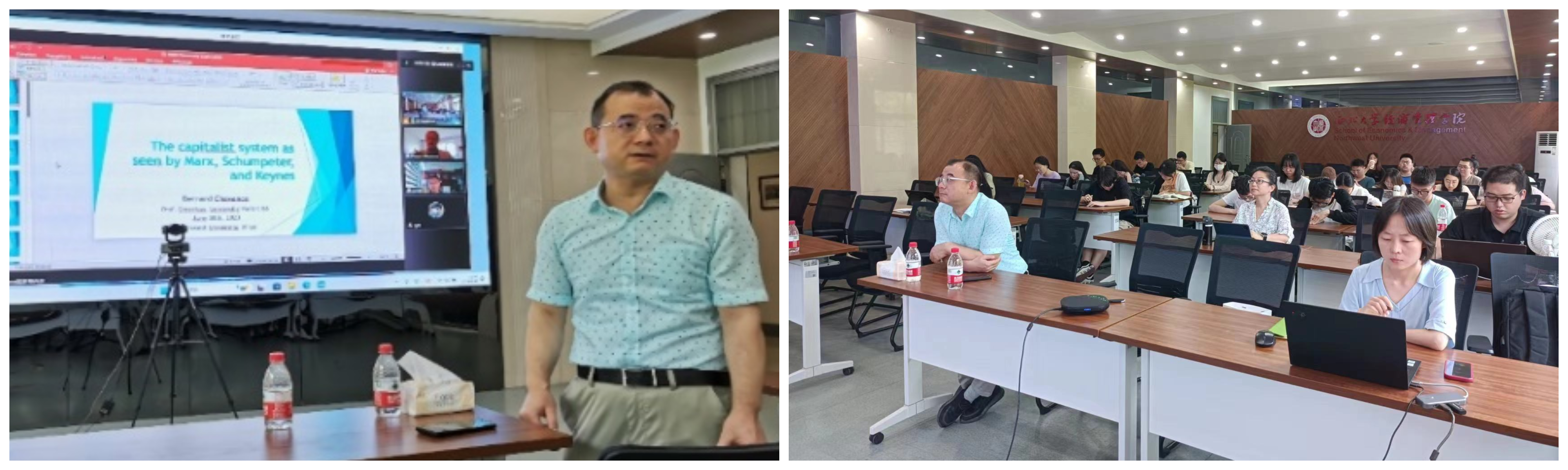 本次活动邀请贝尔纳·沙旺斯(Bernard Chavance)教授,通过线上方式,作了题为“The capitalist system as seen by Marx, Schumpeter, and Keynes”的讲座。贝尔纳·沙旺斯(Bernard Chavance)教授是经济制度比较分析和制度经济学领域世界知名专家,巴黎第七大学(现巴黎西岱大学)名誉教授,曾任法国社会科学高等研究院院长,已撰写、编辑或翻译十余部比较经济制度和制度经济学领域著作,其著作被翻译为英、俄、日、中文,传播广泛,国际影响深远。与我院合作获批科技部国家外专局“高端外国专家引进计划”。