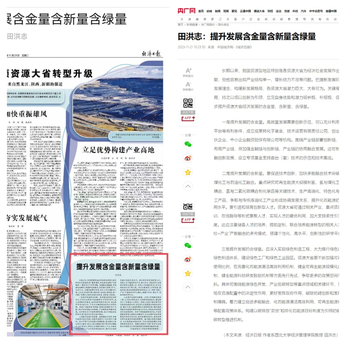 学院教授、博士生导师田洪志的文章《提升发展含金量含新量含绿量》2023年11月21日在《经济日报》刊发。