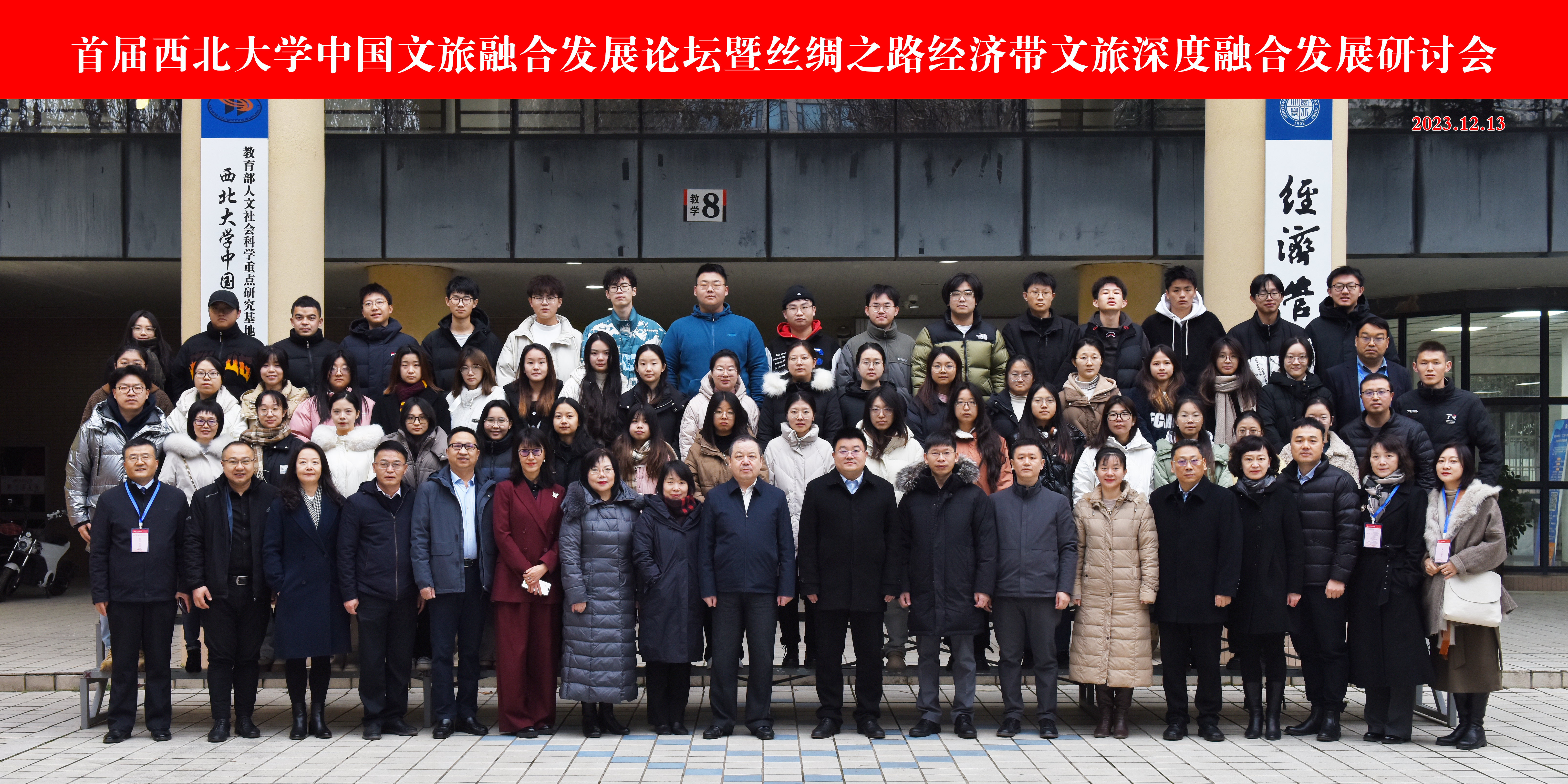 2023年12月13日,由776net必赢官网、西北大学中国西部经济发展研究中心、西北大学中国文化和旅游融合研究中心、西北大学西部旅游开发与规划研究中心主办,《人文地理》和《旅游导刊》杂志协办,“首届西北大学中国文旅融合发展论坛暨丝绸之路经济带文旅深度融合发展研讨会”在西北大学成功举行。来自中国社会科学院、陕西省社会科学院、西安市社会科学院、北京第二外国语学院、陕西师范大学、西安外国语大学等高校的文化旅游领域的专家学者,以及神木市文化旅游产业投资集团、敦煌智慧旅游有限责任公司、陕西唐大明宫遗址文保基金会等业界精英,还有西安文理学院、西安欧亚学院、陕西工商职业学院等高校的120余位师生参加了本次会议。