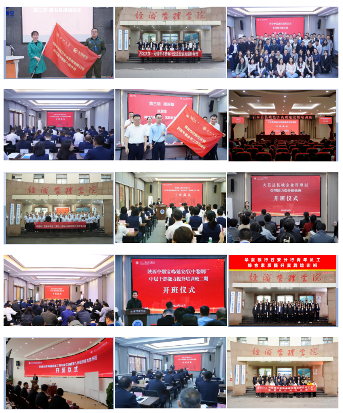 2023年,为21家单位开展了26期定制化培训,服务学员1577人。合作单位包括:中煤科工集团西安研究院、开源证券、长羽航空、富阎管委会、石泉县政府、大荔县工业和信息化局、光大银行西安分行、华夏银行西安分行、西安地铁、韩城产投集团、宏府集团、陕西路桥集团陕西中烟宝鸡/延安/汉中卷烟厂……