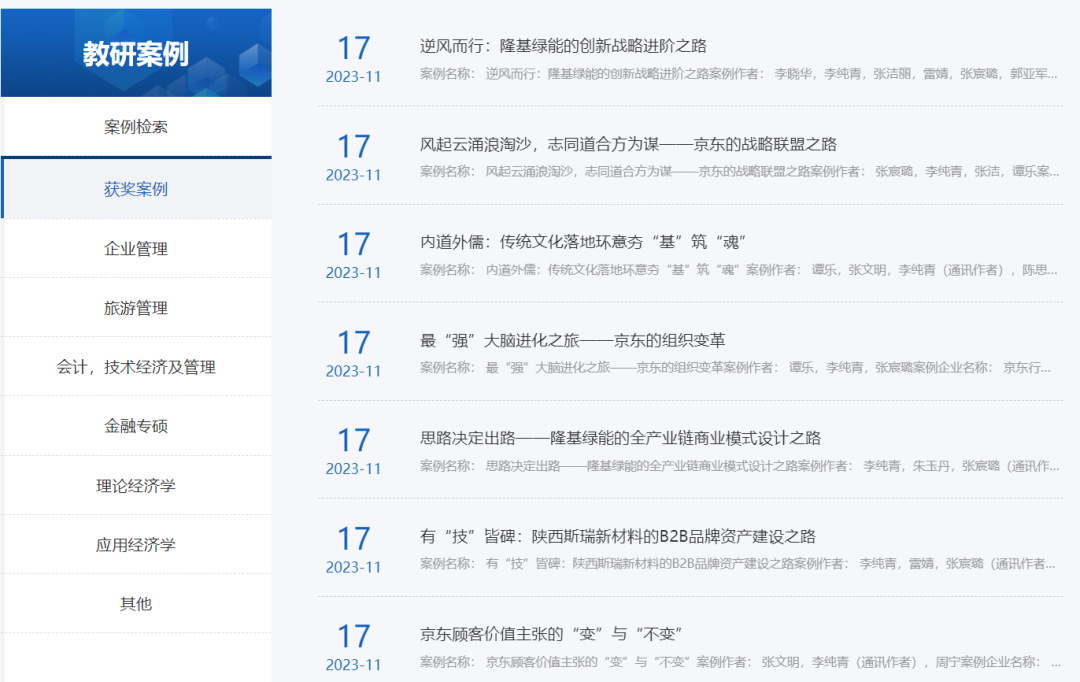 西部案例研究中心2023年基本完成了案例库建设工作,案例库将收录由学院教师与学生撰写的优秀案例,所收录的案例将反哺案例教学与案例研究,由案例中心组织的调研活动所获取的调研材料将上传保存并可自由下载。未来将依托案例库开展案例竞赛等活动,该网站的建设为我院案例研究的发展提供了重要保障。