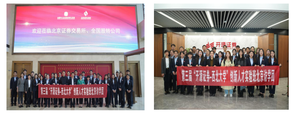 2023年4月10日-13日,第三届实验班师生前往北京,先后走进北京聚宽投资管理有限公司、北京证券交易所、开源证券北京区域总部、中国人民大学、北京华软新动力私募基金管理有限公司开展了为期四天的参访学习活动。本次访学活动由校党委常委、副校长张远军、开源证券党委副书记李晓锋带队,一同前往的还有学院院长马莉莉教授、金融系副主任王峰虎以及开源证券人力资源部总经理助理刘云。