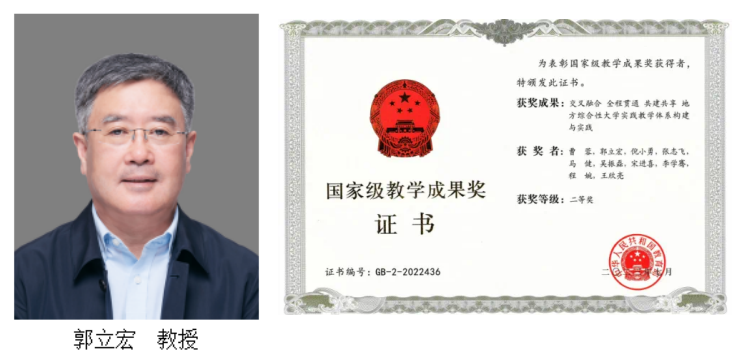 1.郭立宏教授、吴振磊教授参与的《交叉融合 全程贯通 共建共享 地方综合性大学实践教学体系构建与实践》获得国家教学成果奖二等奖。