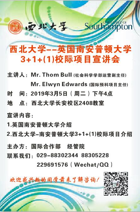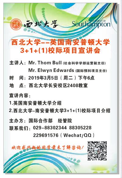 西北大学--英国南安普顿大学 校际项目宣讲会