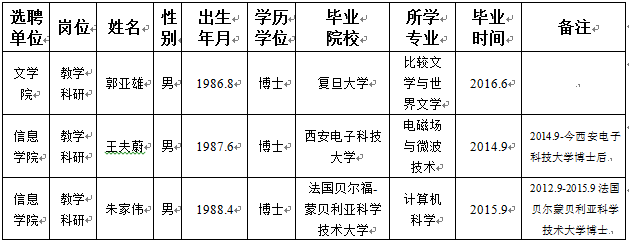 2017年6月26日上午10:00-10:40,我院在长安校区经管学院8号楼二层会议室,召开了选聘博士生试讲面试会议。面试小组由学校人事处委派的教学督导和我院相关专家组成。面试小组通过试讲、答辩及综合能力考察,结合我院近年来学科发展的重点,以及专业的需要,面试小组同意选聘以下1名博士毕业生来校任教。现将本次拟选聘人员基本情况公示如下(公示期3天):
