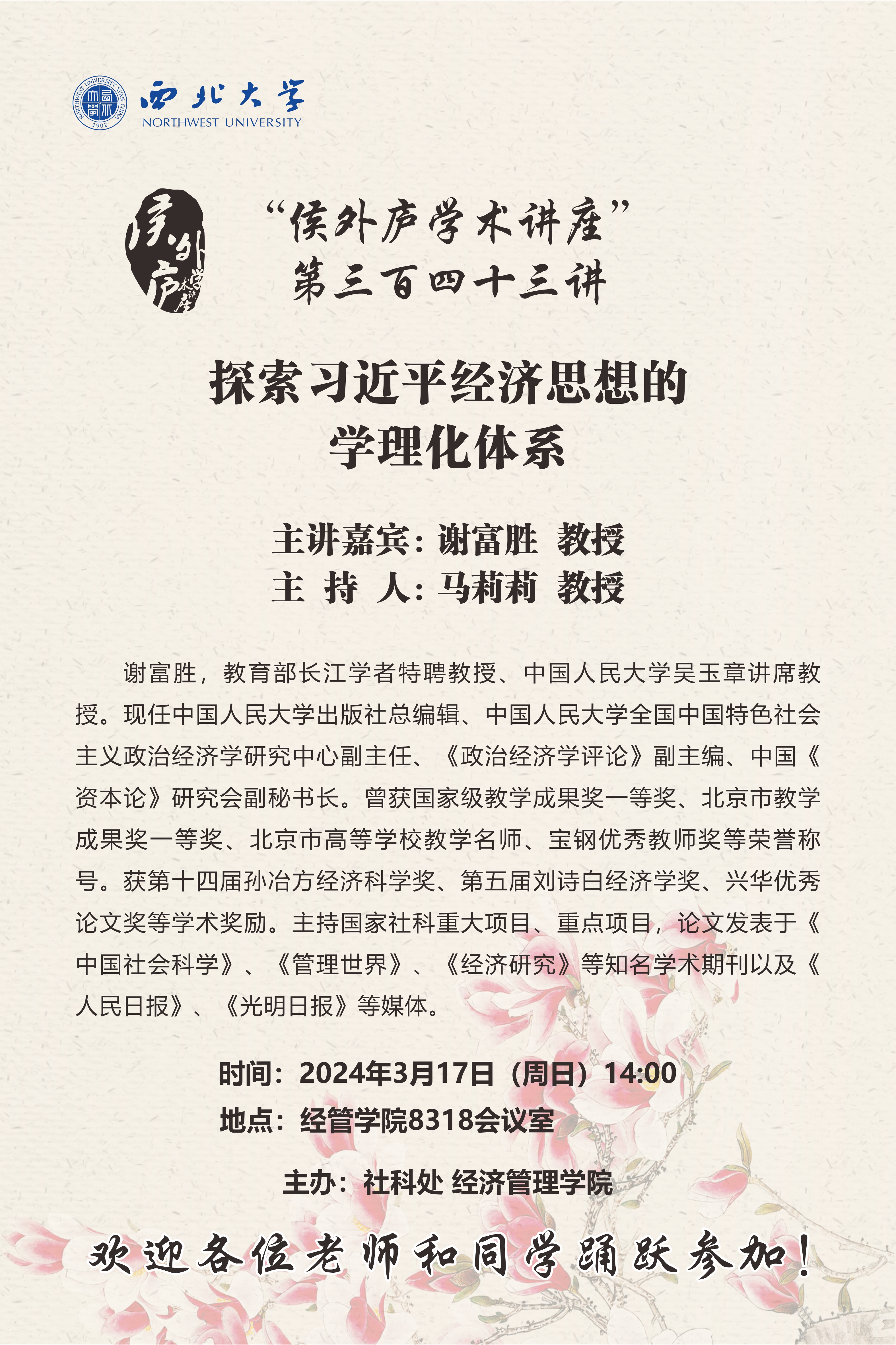 “侯外庐学术讲座”第三百四十三讲---探索习近平经济思想的学理化体系