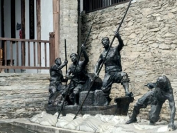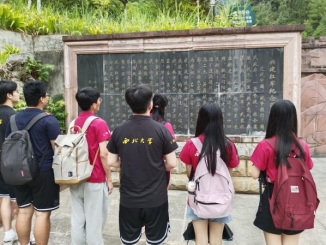 下午五时左右,实践队前往红军镇红军纪念馆。在这里,实践队参观了红军纪念碑和红军纪念壁画群,在山顶祭扫红军老祖的墓,了解到了“红军”这个名字的由来。