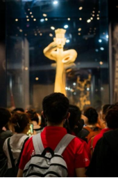 随后,团队成员来到青铜器馆。作为蕴藏中国最广大祭祀礼器的博物馆,以递进式的六个展厅向游客全面描述了古蜀地区青铜器发展的全过程。这里以青铜人首鸟身像为主体标志性雕塑,辅以大型铜质浮雕背屏,通过连续递进的场景组合,全面系统地展示三星堆的青铜雕像群及一批古蜀青铜神品重器。