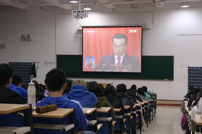 2017年“两会”再次召开,全国各地的代表、委员齐聚北京共商国家大事。为认真贯彻落实中省高校思想政治工作会议精神,引导学生关注时事政治,提高学生的政治修养,丰富学生的思政课堂,经管学院积极组织学生收看收听“两会”政府工作报告、人大常委会工作报告、“两高”工作报告并学习“两会”精神。
