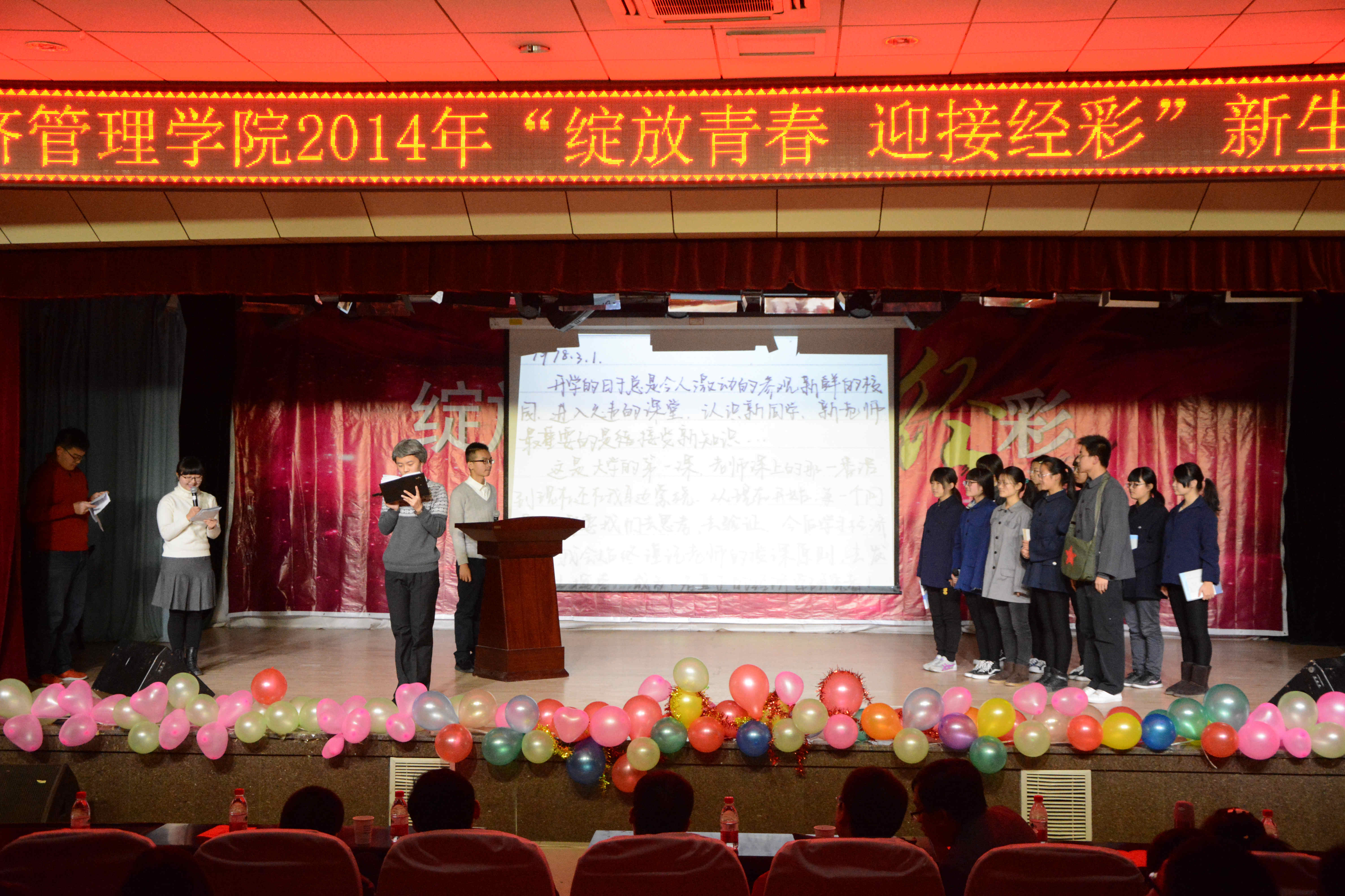 12月4日晚,我院2014级新生系列活动总结----“绽放青春,迎接经彩”颁奖晚会在团委报告厅隆重举行。我院党委书记李国良,院团委老师及新生共计400余人参加了本次晚会。