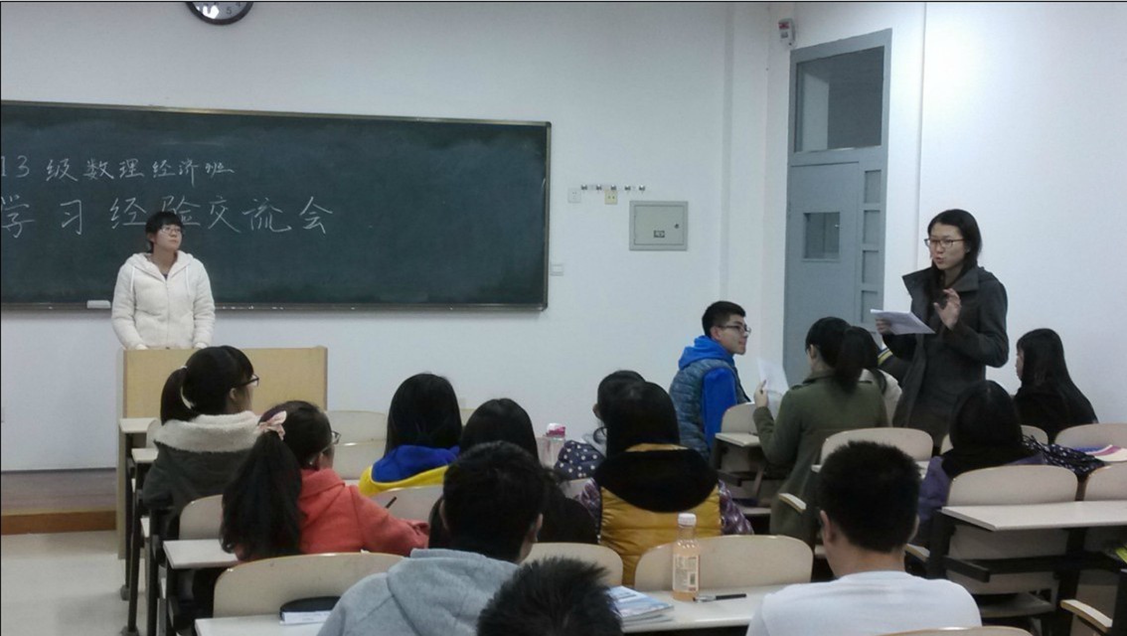 为了帮助2013级新生尽快适应大学生活,掌握正确学习方法,我院数理经济学专业于11月21日晚6时在3号教学楼3508教室举办了新老生学习经验交流会。