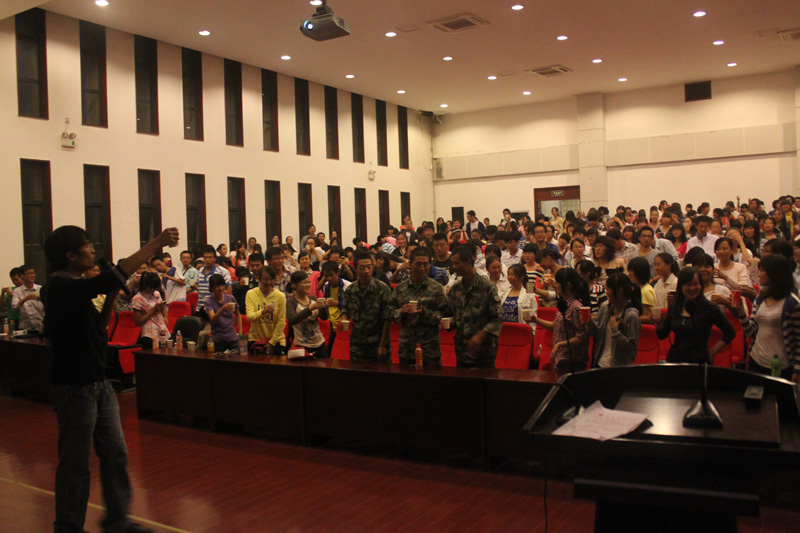 中秋节当晚,军训新生还在金海恒业报告厅开展了形式多样、丰富多彩的中秋联欢活动,同学们踊跃上台,献歌献舞,各种精彩的节目将活动不断推向高潮,现场成为了欢乐的海洋。