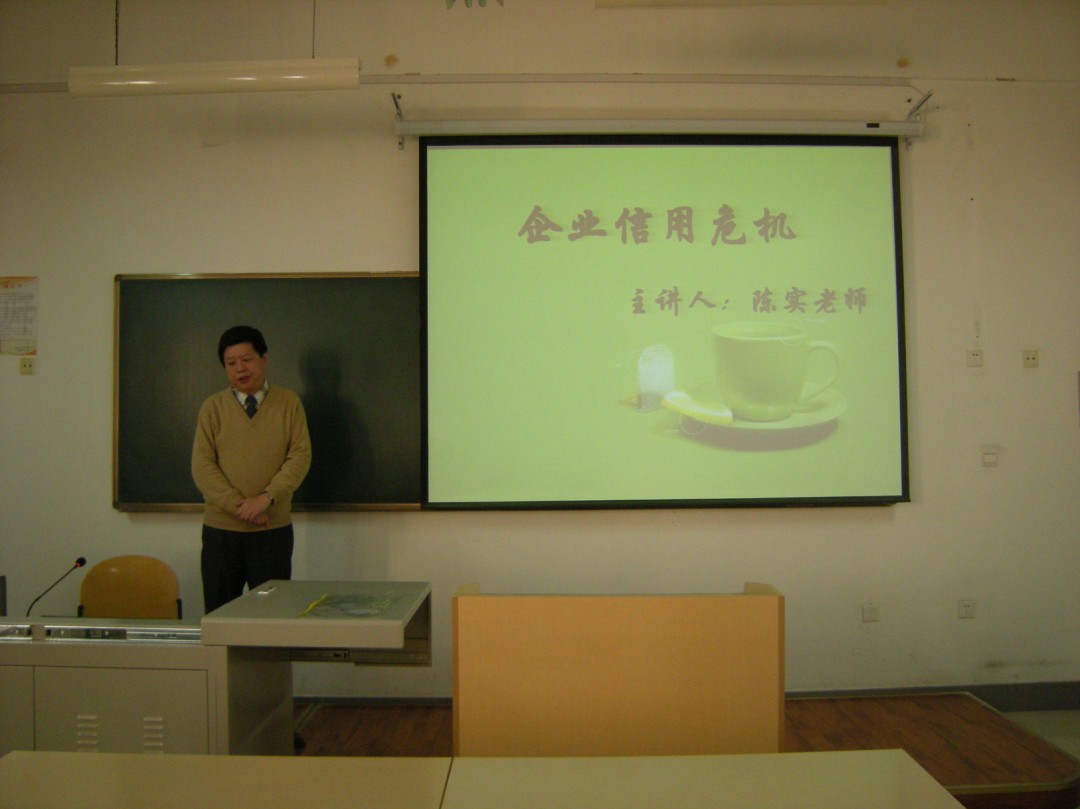 本次活动以“企业信用危机”为主题,并有幸邀请到了我院陈实副教授与同学们就此话题进行深入探讨。陈实老师首先讲述了企业信用危机的危害,并分析了信用危机产生的原因,同时通过对比中外文化制度等方面的差异,引出导致信用危机的根源,即制度和信仰。陈老师幽默风趣的语言,使整个会场的气氛轻松而又活泼,同学们纷纷发表自己的看法和见解。同学们讨论了信用危机与经济发展状况的关系,认为在现阶段我国的市场经济还不完善,出现企业信用危机、责任缺失的情况不可避免;紧接着,同学们从外企本土化、食品安全、个人信用三方面对企业信用危机发生的根源进行了深入探讨;最后,同学们围绕如何解决企业信用危机展开了热烈讨论。