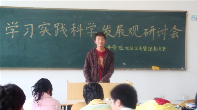 各团支书宣布了学院关于在团员中开展以学习实践科学发展观为主要内容的增强团员意识主题教育活动的实施意见,要求广大团员要认真学习领会科学发展观的重大意义,科学内涵,精神实质和根本要求,并结合实际情况制定出符合学生自身发展的“职业生涯规划”,通过这次活动达到进一步坚定理想信念,提高思想认识,促进全面发展,创建优良学风。08级各团支部围绕主题,通过主题团日宣讲会、小组讨论、交流发言、撰写心得体会等形式不断将这项活动引向深入。