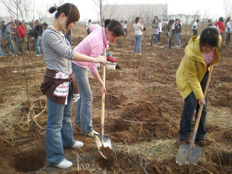 3月11日下午3:40,我院学生准时在南校区中央广场集合。在学生处学生教育科科长那龙宇老师及我院学生工作干部马金保、史暐、张洪杰的带领下,赶赴植树地点。后勤集团的老师向同学们教授相关工作要领之后,同学们在各自的负责区域内开始了热火朝天的植树活动。