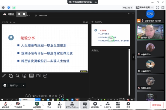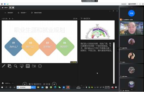 董国强老师还结合我院学生实际情况,为同学们的职业生涯规划作出了重要指导、提出了宝贵建议。他指出,职业生涯规划要提前准备、明确目标,顺应时代潮流、顺应国家大势,踔厉奋发,勇毅前行,在奋斗中实现人生价值。