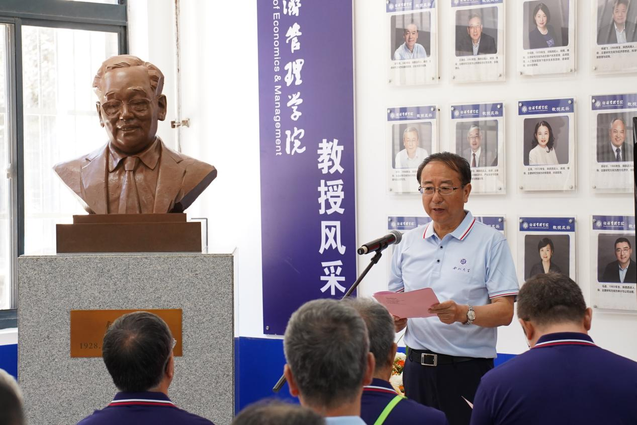 活动最后,郭立宏校长发表讲话,他指出,何炼成先生是孜孜不倦的学术家,在学术研究上身先士卒,高瞻远瞩,是矢志不渝的领跑者,是出神入化的教育家,教学方法独到,引人入胜,教学态度严谨求实,循循善诱,是西大精神的忠诚践行者和生动诠释者,先生到西北大学以来,极其刻苦、勤奋,在非常艰苦的条件下,他亲历和推动了西北大学经济学科一次又一次的辉煌。他希望在何老师的凝望中,经管学院广大师生要赓续优良传统、勇担时代使命,踔厉奋发、勇毅前行,为推动经济学科和学校事业高质量发展贡献更大力量。