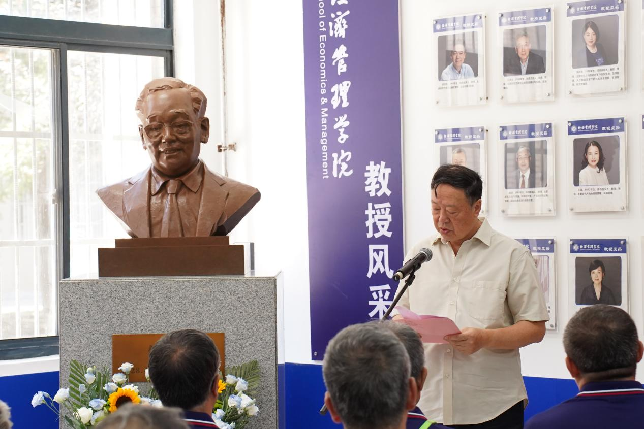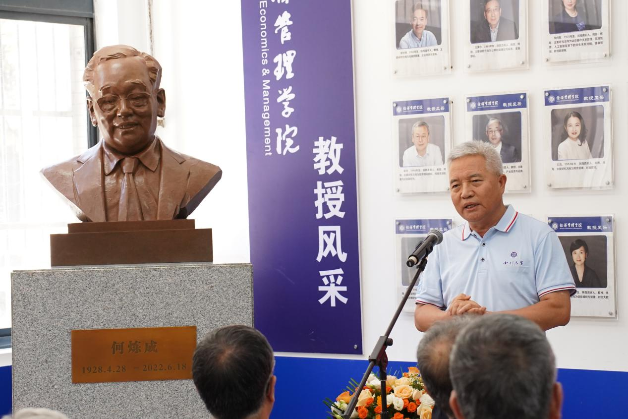 7月15日上午,776net必赢官网举办了何炼成先生塑像揭幕仪式暨第十届“何炼成奖”颁奖仪式。何炼成教授是我国著名经济学家、教育家,中国发展经济学奠基人之一,776net必赢官网创始人。西北大学校长郭立宏,副校长常江、吴振磊,77级、78级经济系校友及何炼成先生家人,776net必赢官网班子成员和师生代表70余人参加揭幕仪式。何炼成先生铜像由以张维迎教授为代表的77级经济系同学共同捐赠。