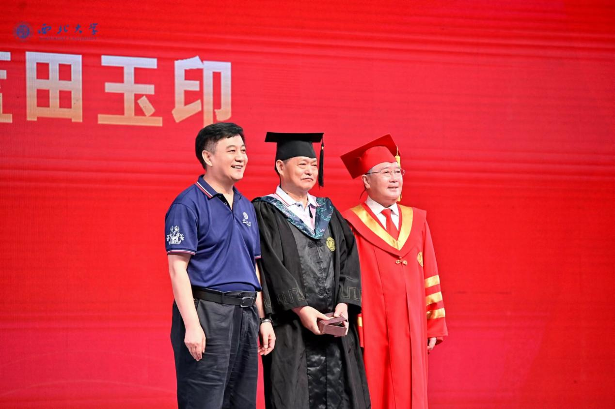 77级校友吴世科接受拨穗并获赠蓝田玉印