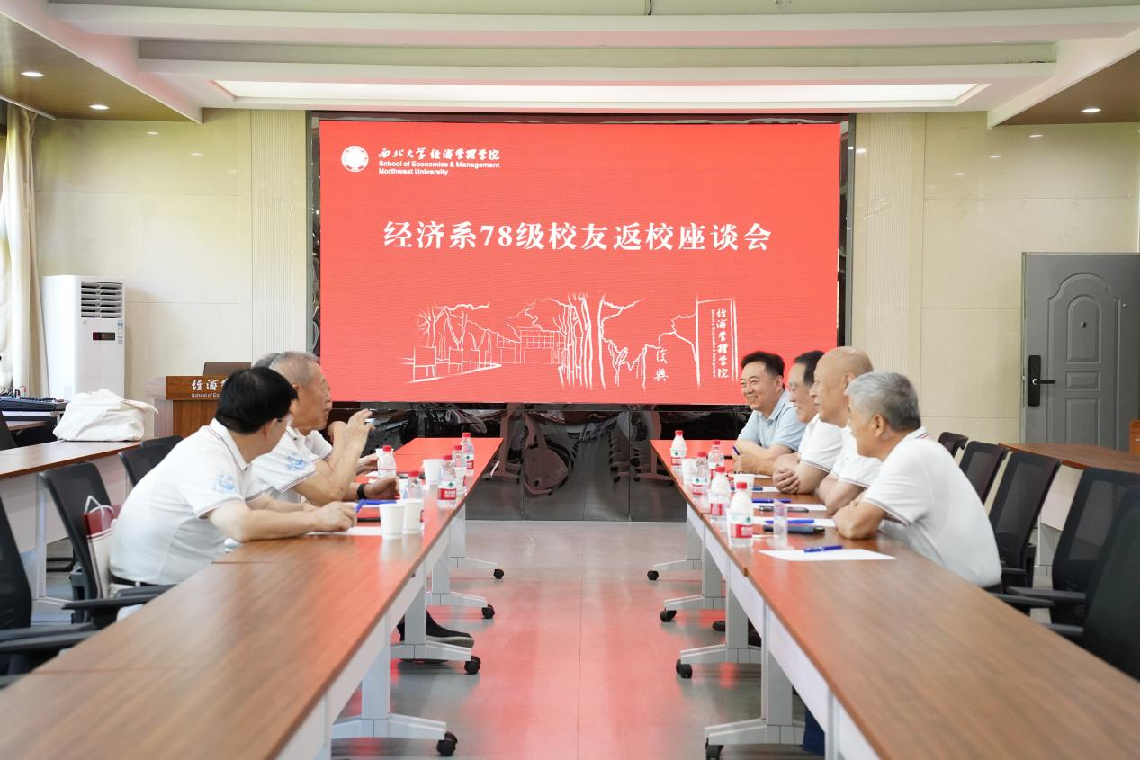 在返校期间,经济系77、78级校友还参加了“新三届”校友毕业40周年纪念大会暨第四届校友集中返校活动。纪念大会上,77级高全成、78级李树民两位校友获颁“院系最佳联络人”,77级吴世科校友接受拨穗并获赠蓝田玉印,78级丁文锋校友为经管学院老教师代表樊正棠献花。77级、78级校友还召开了座谈会。